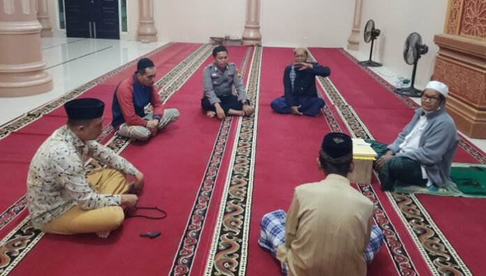 Kegiatan tersebut dilaksanakan oleh personel Polsek Kabun, Aipda Sujono Eka dan Bripka Desmon Arfi dan tampak sedang berbincang serta bercengkrama dengan para Jema’ah Mesjid Al-Fajar.