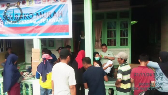 Rokan Hilir, Nadariau Com – Pada hari  Kamis  (21/11/2024) Tim Pemenangan Afrizal Sintong dan Setiawan (Asset) Kelurahan Bagan Hulu, Kecamatan Bangko yang Diketuai Irwan Gunawan bersama  Fadli menyiapkan sembako murah sebanyak  2150 paket sembako murah, nilai 1 paket sembako Rp.50.000 ( Lina puluh ribu rupiah ) 1 goni beras ukuran 5 kg, 1 liter minyak goreng , 1 kg gula pasir. Khusus untuk masyarakat Bagan Hulu. Di rumah kediaman ketua tim Asset Bagan hulu di jalan perwira Bagansiapiapi,