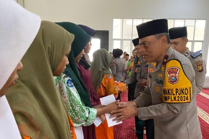 Dalam kesempatan itu, Kapolda Riau, Irjen Pol Mohammad Iqbal yang diwakili Wakapolda, Brigjen K Rahmadi juga memberikan tali asih kepada 40 orang anak yatim dan membagikan 400 nasi kotak kepada para jemaah yang mengikuti doa bersama.