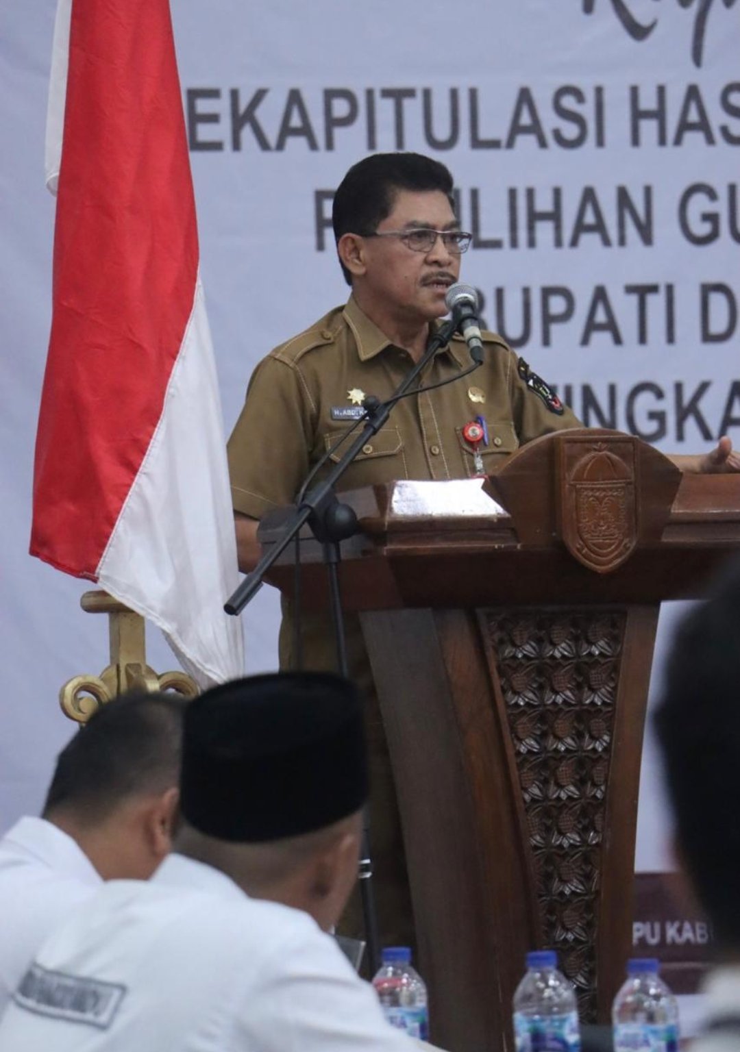 PELALAWAN (Nadariau) – Bupati Pelalawan diwakili Pj. Sekda Pelalawan H. Abdul Karim menghadiri Rapat Pleno terbuka penghitungan perolehan suara pemilihan Gubernur dan Wakil Gubernur, Bupati dan Wakil Bupati Tahun 2024 tingkat Kabupaten Pelalawan yang dilaksanakan di Gedung Daerah Datuk Laksemana Mangkudiraja, Selasa (3/12/2024).
