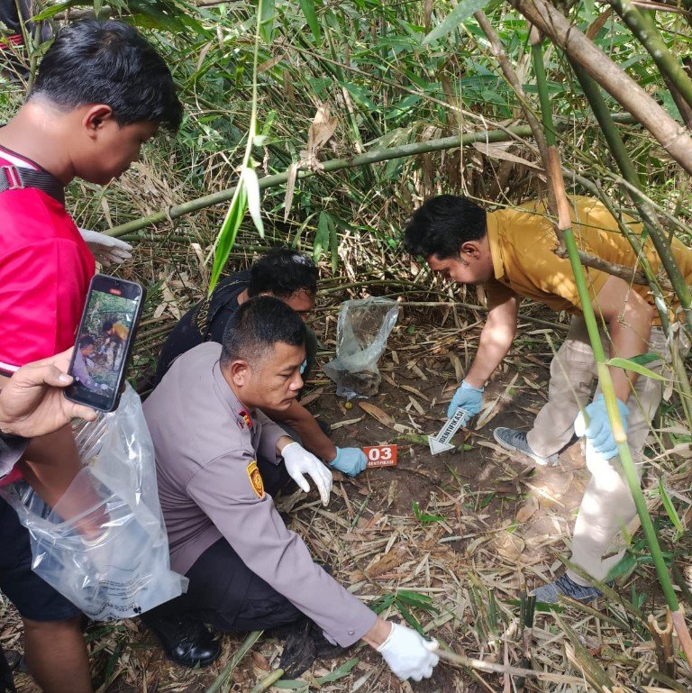 Saat tiba di lokasi, polisi menemukan tengkorak manusia, tulang-tulang tubuh lainnya, sehelai rambut, serta beberapa barang seperti kaos hitam dan parang. Barang-barang tersebut ditemukan tersebar dalam radius 5 hingga 8 meter.