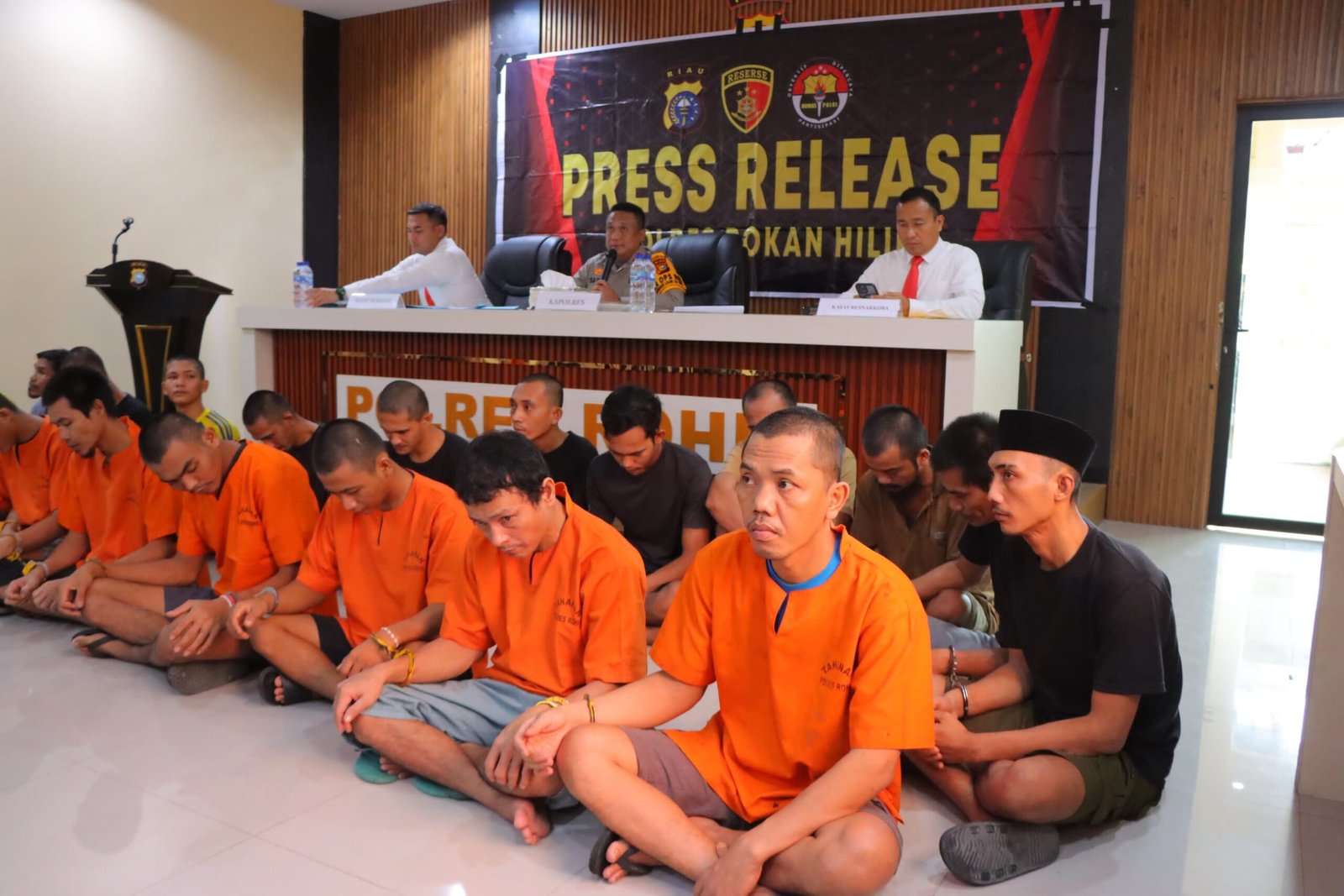 Press Release tersebut Polres Rokan Hilir menghadirkan 20 tersangka. dihadapan puluhan wartawan dari berbagai awak media Kapolres Rohil AKBP Isa Imam Syahrony menyampaikan jika pihaknya berhasil mengungkap sebanyak 452 kasus dan telah menangkap sebanyak 503 orang tersangka.