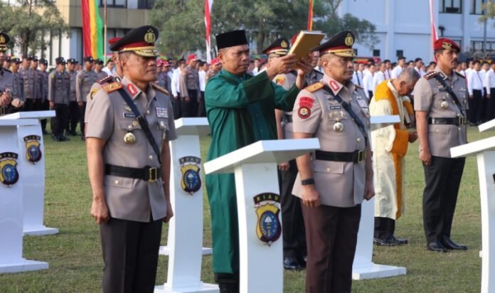 Pekanbaru (Nadariau.com) – Kapolda Riau, Irjen Pol Mohammad Iqbal memimpin upacara serah terima jabatan (sertijab) dan pengambilan sumpah Wakapolda Riau yang baru dan sejumlah pejabat utama di halaman Mapolda Riau, Kamis (09/01/2025).