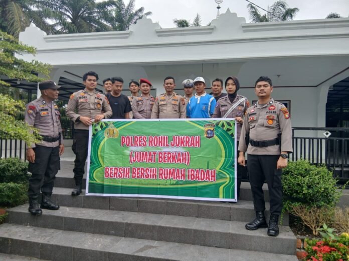 ” Kegiatan ini sebagai wujud kepedulian Polri terhadap kebersihan rumah ibadah di wilayah hukum Polres Rohil.” Jelas dia.
