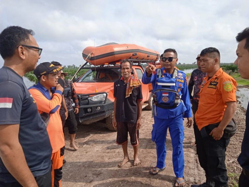 Selain itu, pencarian hanya bisa dilakukan dengan kendaraan berpenggerak roda empat (4×4) atau menggunakan speed boat, karena kondisi jalan yang rusak dan tergenang air.