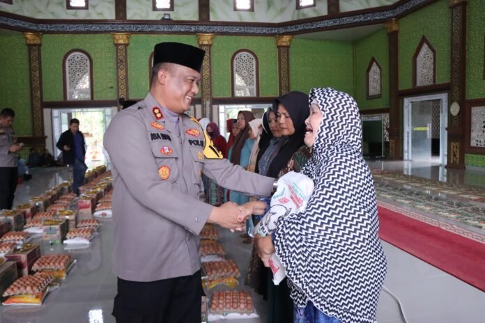 Kapolres Rohil Beri Bantuan Santunan ke Dhuafa dan Anak Yatim di Masjid Nurul Iman