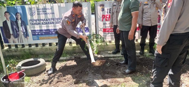 Kapolsek Sukajadi Tanam Bibit Pohon Bersama Personel yang Berulang Tahun