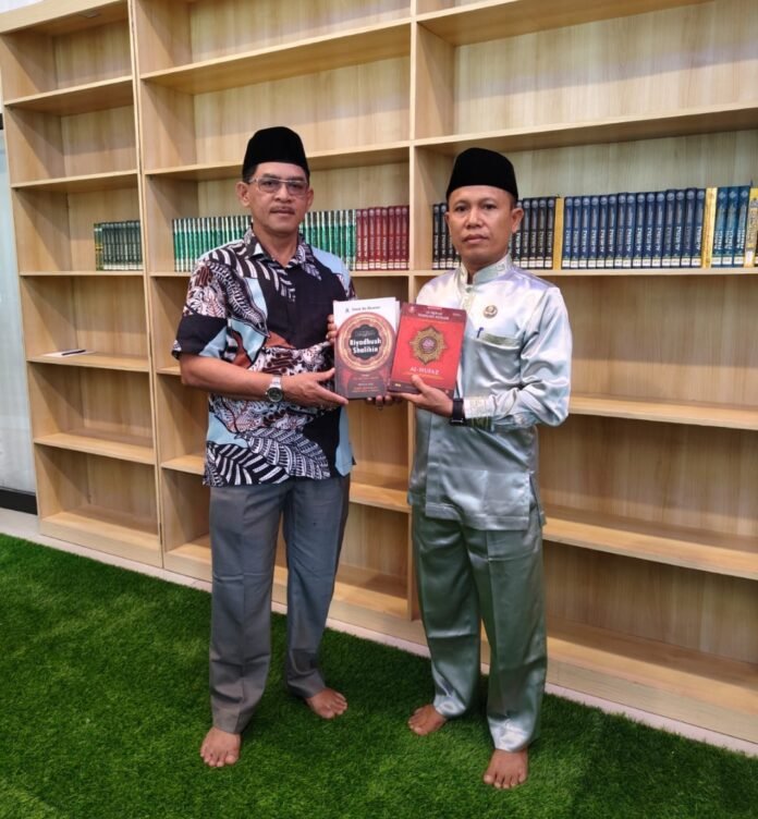 PELALAWAN (Nadriau) – Kepala Kantor Urusan Agama (KUA) Kecamatan Pangakalan Kerinci, Dr (c) H Sudur Malay, S. Fil. I., M. Pd serahkan Buku dan wakaf Al Qur’an kepada Pengurus Pustaka Masjid Besar Al Muttaqin pangkalan kerinci, yang di terima langsung oleh pengurus, H Abdul Karim, SH., dengan jumlah Al Qur’an 148 buah buku 124 Examplar. Jum,at, 18/04/2025.