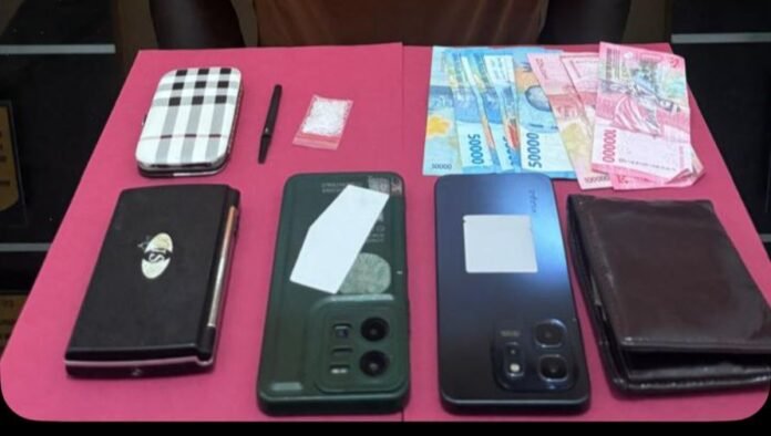 Mereka melakukan penangkapan terhadap kedua orang tersebut dan saat di introgasi mengaku bernama inisial SP alias Nanok dan SF alias Ari. saat dilakukan penggeledahan terhadap SP alias Nanok di temukan 1 bungkus plastik bening yang di dalam nya terdapat 2 bungkus plastik bening di duga narkotika jenis sabu 1 unit hp merk iPhone warna hitam 1 unit hp infinix motif naga warna hitam 1 buah dompet warna coklat uang tunai Rp.400.000,-