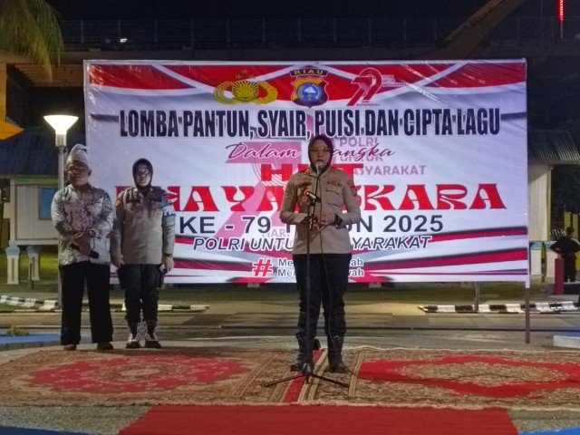 Pekanbaru (Nadariau.com) – Dalam rangka memperingati Hari Ulang Tahun Bhayangkara ke-79 Tahun 2025, Polsek Senapelan menggelar kegiatan lomba pantun, syair, puisi dan cipta lagu bertemakan Polri untuk Masyarakat, di Rumah Singgah Tuan Kadi, Jalan Perdagangan, Kelurahan Kampung Bandar, Kecamatan Senapelan, Kota Pekanbaru, Kamis (19/06/2025) malam.
