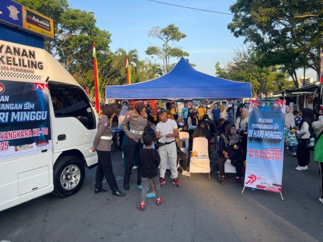 Pekanbaru (Nadariau.com) – Dalam rangka memperingati Hari Bhayangkara ke-79, Satuan Lalu Lintas (Satlantas) Polresta Pekanbaru menggelar layanan SIM Keliling di area Car Free Day (CFD) Jalan Jenderal Sudirman, tepatnya di sekitar Pos Polisi Gurindam 1, Minggu (22/06/2025) pagi.