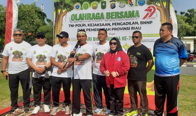 Dalam rangka menyambut Hari Bhayangkara ke-79, Polda Riau bersama unsur Forum Koordinasi Pimpinan Daerah (Forkopimda) menggelar olahraga bersama yang sekaligus menjadi momentum lahirnya kesepakatan penting mengembalikan fungsi Taman Nasional Tesso Nilo (TNTN) sebagai rumah gajah dan benteng terakhir satwa liar di Bumi Lancang Kuning.