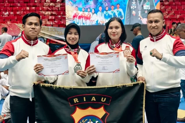 Pekanbaru (Nadariau.com) — Prestasi membanggakan kembali ditorehkan jajaran Polda Riau. Dua Polisi Wanita (Polwan) muda berhasil meraih medali dalam ajang bergengsi Kejuaraan Taekwondo Kapolri Cup VI 2025 yang digelar di GOR Jatidiri, Semarang, Jawa Tengah, pada 25 hingga 27 Juli 2025.