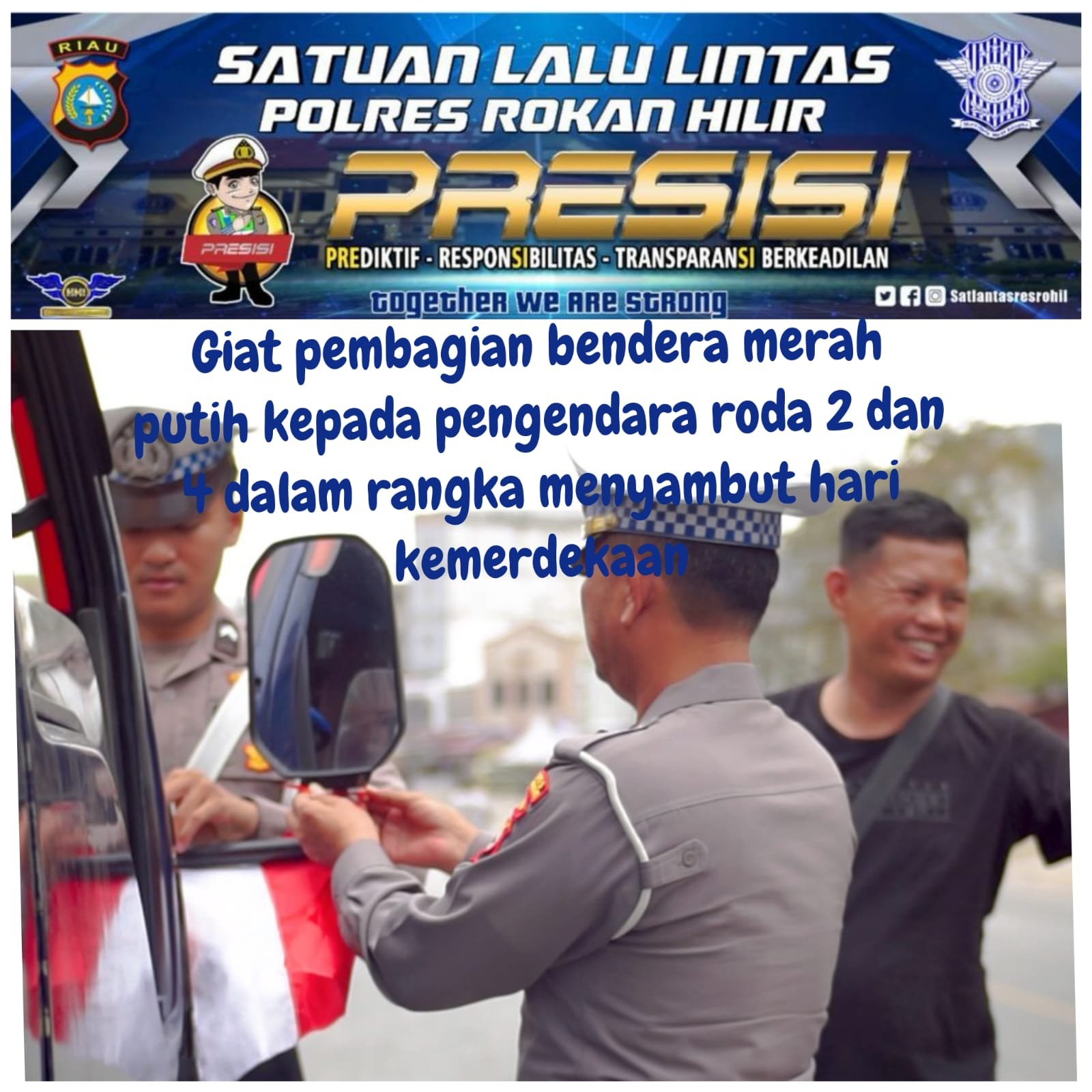 Selain meningkatkan rasa Nasionalisme kepada masyarakat dalam bentuk kegiatan memberikan Bendera Merah Putih, Satlantas polres Rohil juga berharap agar terpasangnya Bendera Merah Putih di kendaraan R2 dan R4 bagi pengguna jalan.