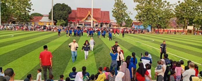 PELALAWAN (Nadariau) – Bupati Pelalawan H. Zukri meresmikan pemakaian Ruang Terbuka Hijau (RTH) Taman Bola di kota Pangkalan Kerinci, Sabtu (9/8/2025). Peresmian ini menjadi momentum penting bagi masyarakat, khususnya warga Pangkalan Kerinci, untuk memiliki sarana olahraga sekaligus ruang publik yang representatif.