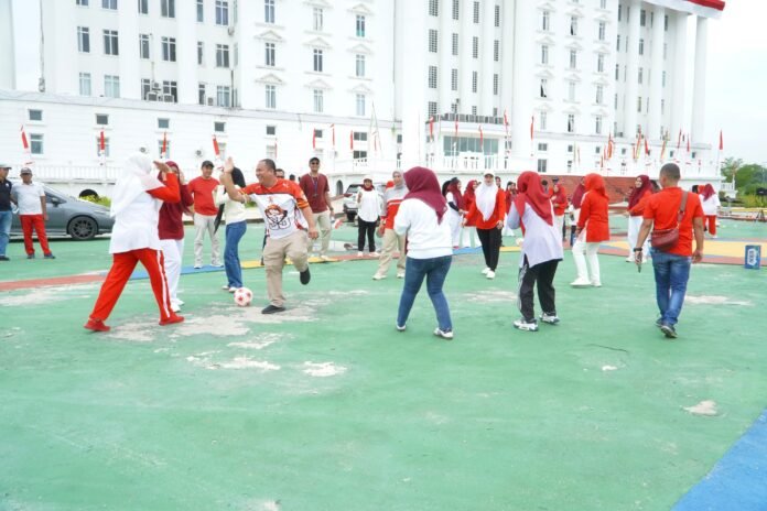 Rokan Hilir ( Nadariau Com) – Sorak tawa, semangat kebersamaan, dan rasa haru membaur di halaman Kantor Bupati Rokan Hilir pada Rabu (20/8/2025). Di tengah suasana sederhana namun sarat makna, keluarga besar Dinas Komunikasi, Informasi, Statistik, dan Persandian (Diskominfotiks) Kabupaten Rokan Hilir bersama Darma Wanita Persatuan (DWP) tampil kompak menyemarakkan peringatan Hari Ulang Tahun (HUT) ke-80 Kemerdekaan Republik Indonesia melalui serangkaian lomba antar bidang. Momentum ini bukan sekadar hiburan, melainkan wujud nyata persatuan, kebersamaan, dan semangat nasionalisme yang terus menyala di lingkungan aparatur sipil negara.