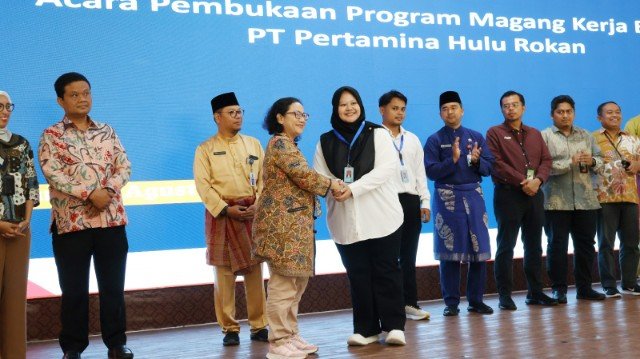 Program Magang Kerja Angkatan ke-7 dimulai dengan upacara pembukaan dan sesi orientasi pengenalan lingkungan kerja PHR Zona Rokan, di Gedung Pertemuan RCC, Kompleks Perkantoran PHR, Rumbai, Jumat (22/8/2025). Acara dibuka oleh Kepala Dinas Tenaga Kerja dan Transmigrasi (Disnakertrans) Riau Boby Rachmat serta dihadiri perwakilan SKK Migas Sumbagut.
