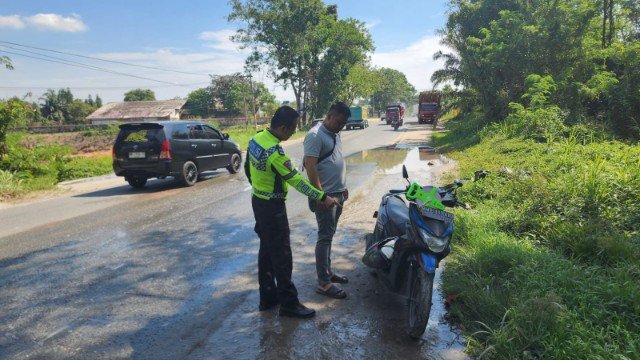 “Kecelakaan berawal ketika motor korban melaju dari arah selatan menuju utara. Sesampainya di lokasi, korban mencoba menghindari genangan air di jalan yang berlubang,” kata Kasat Lantas Polresta Pekanbaru, AKP Satrio B.W Wicaksana Sabtu sore.