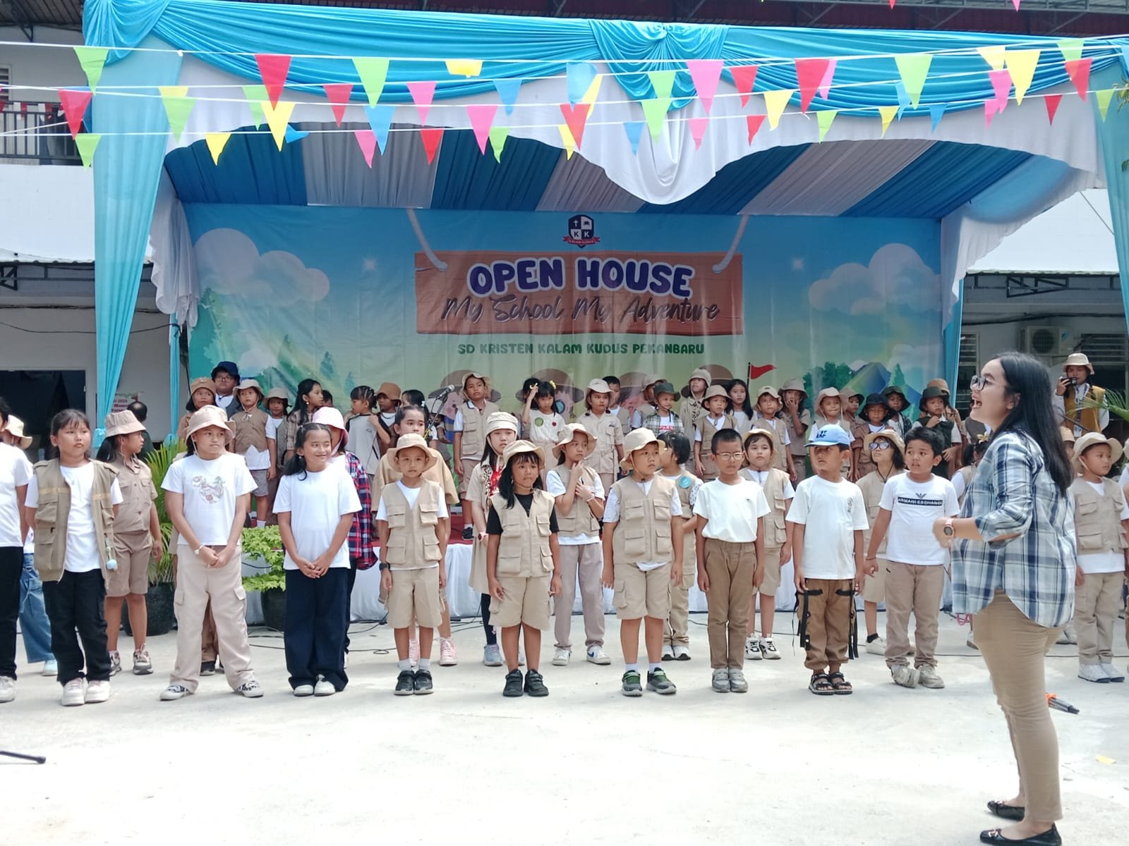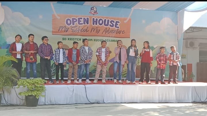 PEKANBARU – Open house SD Kalam Kudus Pekanbaru mengusung tema “My School My Adventure” yang menampilkan pemeran karya, pentas seni, games, dan bazar berlangsung meriah yang diselenggarakan di lapangan SD Kalam Kudus Pekanbaru, Jumat (29/8/2025).