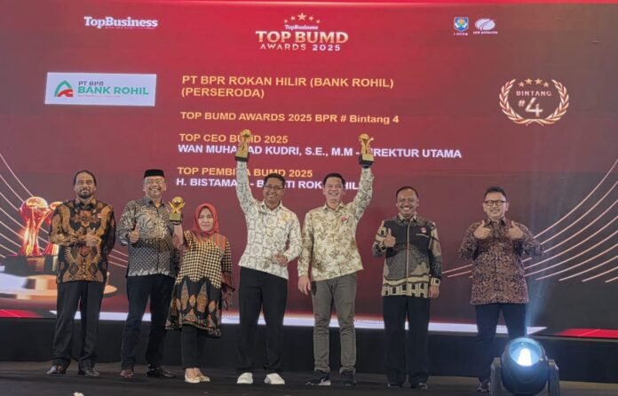 Rokan HilirĀ  ( Nadariau Com ) – Sebuah momentum bersejarah tercipta di Kabupaten Rokan Hilir. PT. Bank Rokan Hilir (Perseroda) resmi menyerahkan Plakat Penghargaan TOP BUMD Awards 2025 kategori TOP Pembina BUMD kepada Bupati Rokan Hilir, H. Bistamam, pada Senin (01/09/2025). Prosesi penyerahan berlangsung di ruang kerja Bupati, dihadiri jajaran direksi serta pejabat eksekutif Bank Rohil.