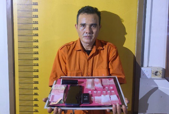 Inhu (Nadariau.com) – Sat Res Narkoba Polres Indragiri Hulu (Inhu) meringkus seorang Pria Baruh baya bernama Ramli alias Ramli (47), warga Dusun Sungai Kandis, Kecamatan Batang Cenaku, lantaran kedapatan menyimpan belasan paket narkotika jenis sabu dengan berat kotor mencapai 13,47 gram.