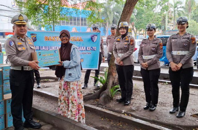 Pekanbaru (Nadariau.com) – Dalam rangka memperingati Hari Ulang Tahun (HUT) Lalu Lintas Bhayangkara ke-70 Tahun 2025, Direktorat Lalu Lintas (Ditlantas) Polda Riau melaksanakan kegiatan bakti sosial dengan membagikan ratusan paket sembako kepada masyarakat, Jumat (12/09/2025).