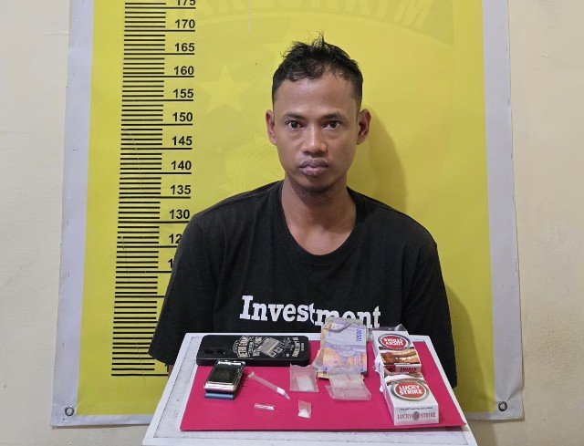 “Dari hasil penyelidikan, tim berhasil mengamankan seorang pria bernama Pramana di dalam Wisma Belinda. Saat dilakukan penggeledahan disaksikan pihak RT setempat, ditemukan satu bungkus rokok berisi sabu seberat kotor 1,80 gram. Selain itu, turut diamankan pula timbangan digital, plastik bening, kotak rokok, sebuah ponsel, hingga uang tunai Rp50 ribu,” ungkap Kapolres.
