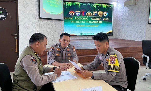 Pekanbaru (Nadariau.com) – Tim Polda Riau melaksanakan penilaian Green Policing Award 2025 yang berlangsung di Aula Mapolresta Pekanbaru, Selasa (16/09/2025).