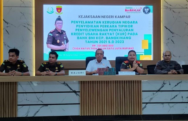 Kepala Kejari (Kajari) Kampar, Dwianto Prihartono, mengungkapkan bahwa pihaknya berhasil mengamankan uang kerugian negara dalam penyidikan perkara tindak pidana korupsi penyaluran KUR pada Bank KCP Bangkinang periode 2021-2023.