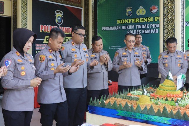 Rangkaian acara dimulai dengan pembukaan, dilanjutkan sambutan Kapolres Kampar, hingga pemotongan tumpeng bersama sebagai bentuk rasa syukur.