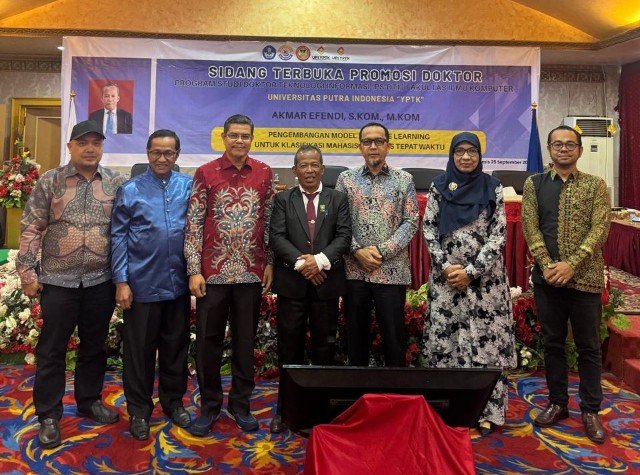Padang (Nadariau.com) – Dosen Fakultas Teknik Universitas Islam Riau (UIR), Akmar Efendy , sukses meraih gelar doktor setelah mempertahankan disertasinya berjudul “Pengembangan Model Machine Learning untuk Klasifikasi Mahasiswa Lulus Tepat Waktu” pada Program Studi Doktor Teknologi Informasi, Fakultas Ilmu Komputer, Universitas Putra Indonesia YPTK Padang, Kamis sore (25/9/2025).