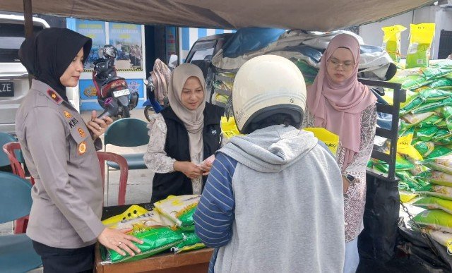 Kapolsek Senapelan Kompol Dwi Krismiyati mengatakan, kegiatan ini merupakan bentuk nyata sinergitas Polri bersama Bulog untuk membantu masyarakat.
