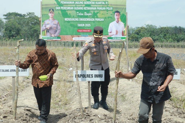 Inhu (Nadariau.com) — Dalam rangka mendukung Program Pemerintah menuju Swasembada Pangan Nasional Tahun 2025, Polres Indragiri Hulu (Inhu) gelar Penanaman Jagung Pipil Serentak Kuartal IV di 13 titik lokasi, Rabu (08/10/2025).