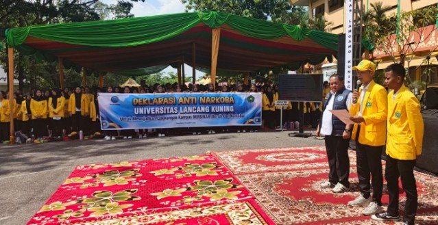 Sebagai penutup, seluruh mahasiswa Unilak dengan semangat tinggi membacakan Deklarasi Anti Narkoba, disaksikan langsung oleh Rektor Universitas Lancang Kuning Prof. Dr. Junaidi, SS, M.Hum, Kepala BNN Kota Pekanbaru Kombes Pol Dr. Wawan, Kepala Dinas Pendidikan Riau Erisman Yahya, SH, MH, Kasi Ops Kasrem 031/WB Letkol Inf Teguh Dwi Raharja, S.Sos, serta para wakil rektor, dekan, dan wakil dekan di lingkungan Unilak.