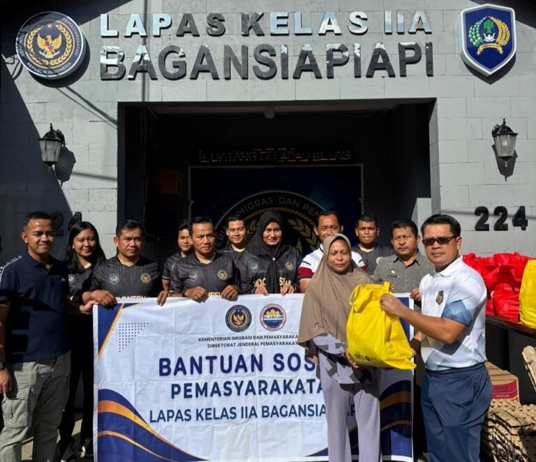 Rokan Hilir ( Nadariau Com ) – Lembaga Pemasyarakatan (Lapas) Kelas IIA Bagansiapiapi, Kabupaten Rokan Hilir, Riau menggelar kegiatan bakti sosial dengan membagikan paket sembako kepada kaum dhuafa dan masyarakat yang membutuhkan pada Jum’at (14/11/2025).