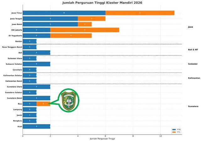 Pekanbaru (Nadariau com) – Universitas Islam Riau (UIR) kembali mencatat prestasi monumental dengan berhasil menembus Klaster Mandiri, level tertinggi dalam sistem Klasterisasi Perguruan Tinggi Akademik Tahun 2026 yang secara resmi diumumkan oleh Kementerian Pendidikan Tinggi, Sains dan Teknologi melalui Direktorat Jenderal Riset dan Pengembangan (Dirjen Risbang) sesuai dengan Surat Pengumuman Nomor 1436/C3/AL.04/2025 tanggal 4 November 2025.