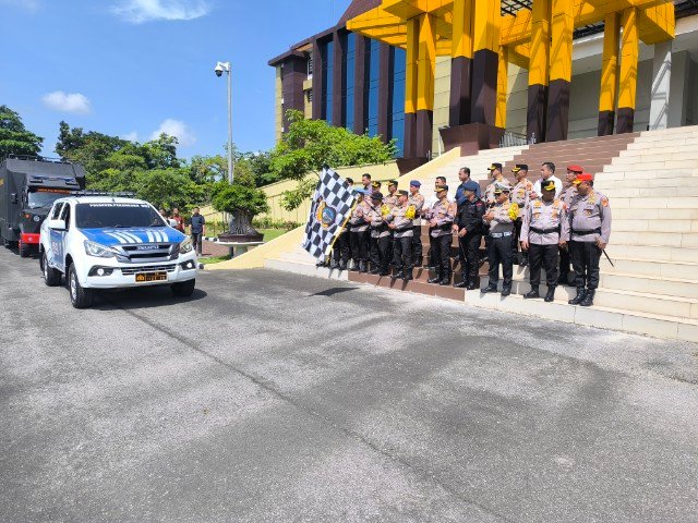 Apel keberangkatan dipimpin langsung oleh Kapolda Riau Irjen Pol Herry Heryawan di Mapolda Riau, Sabtu (29/11/2025).