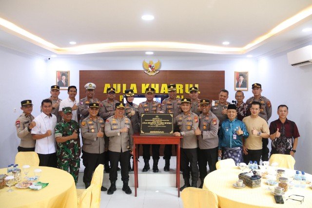 “Setelah memberikan penghargaan kepada anggota yang purna dan santunan kepada anak yatim, barulah kita meresmikan Aula Khairul ini,” kata Kombes Pol Jeki.