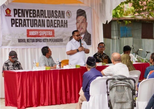Pekanbaru (Nadariau.com) – Kegiatan Penyebarluasan Peraturan Daerah (Perda) yang dilaksanakan Wakil Ketua DPRD Kota Pekanbaru, Andry Saputra, Kamis (27/11/2025), mendapat sambutan hangat dari masyarakat di Jalan Pesisir, Kecamatan Rumbai.