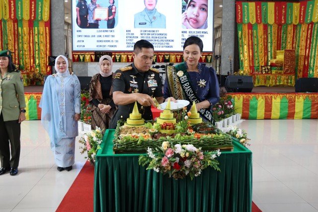Pekanbaru (Nadariau.com) – Kodam XIX/Tuanku Tambusai menyelenggarakan kegiatan Pengukuhan Ibu Raksakarini Sri Sena Kodam XIX/Tuanku Tambusai yang dirangkaikan dengan Perayaan HUT ke-64 Korps Wanita Angkatan Darat (Kowad) serta Peringatan Hari Ibu ke-97 Tahun 2025, di Aula Kodam XIX/Tuanku Tambusai, Pekanbaru, Provinsi Riau, Kamis (18/12/2025).