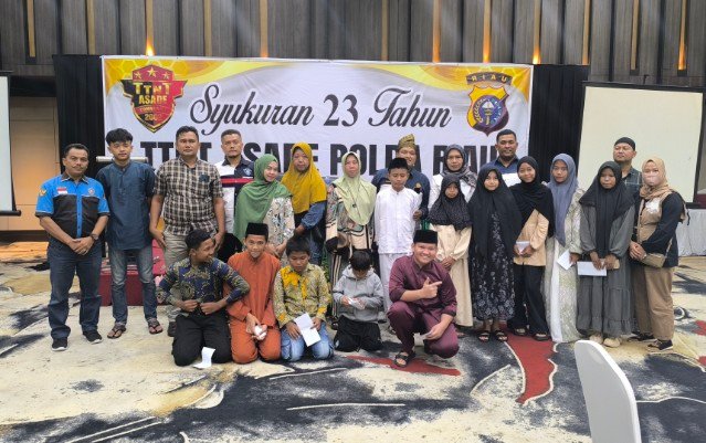 Pekanbaru (Nadariau.com) – Dalam rangka mensyukuri 23 tahun pengabdian sekaligus mempererat tali silaturahmi, Alumni TTNT ASADE Polda Riau Angkatan 2002 menggelar reuni dan syukuran yang dirangkai dengan santunan anak yatim, bertempat di Hotel Furaya Pekanbaru, Minggu (28/12/2025).