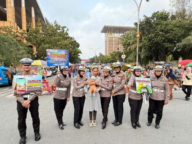 Masyarakat memanfaatkan kesempatan tersebut untuk bertanya langsung seputar aturan lalu lintas, pengurusan SIM, hingga balik nama kendaraan bermotor. Kehadiran Polwan Ditlantas Polda Riau juga menarik perhatian pengunjung, bahkan tak sedikit masyarakat yang mengajak berfoto bersama.