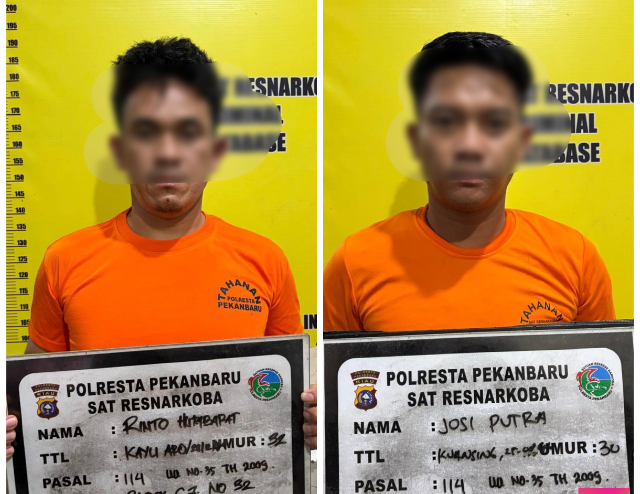 Keduanya ditangkap dalam penggerebekan yang dilakukan Satuan Reserse Narkoba Polresta Pekanbaru di sebuah rumah kos di Jalan Dagang, Kecamatan Sukajadi.