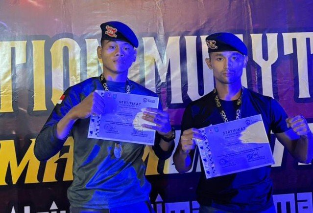 Dumai (Nadariau.com) – Prestasi membanggakan kembali ditorehkan oleh personel Brigade Mobil (Brimob) Polda Riau. Dua personel Brimob Batalyon C Pelopor, Briptu Aqil Jamik Harahap dan Bripda Binsar Martogi Samosir, sukses menjuarai Kejuaraan Dumai Muaythai Open yang digelar di Kota Dumai.