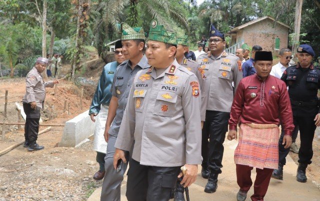 Usai penyambutan, Kapolda dan rombongan langsung bergerak menuju Dusun I, Desa Lubuk Agung, untuk meninjau progres pembangunan Jembatan Merah Putih Presisi yang saat ini tengah dikerjakan.
