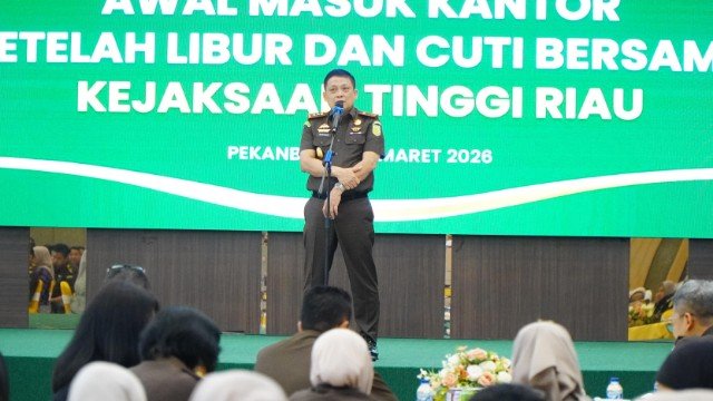 Pekanbaru (Nadariau.com) – Kepala Kejaksaan Tinggi (Kajati) Riau, Sutikno memimpin pertemuan awal bersama seluruh pegawai usai libur dan cuti bersama, Rabu (25/03/2026).