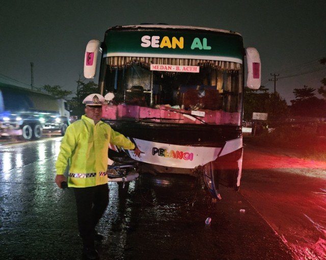 “Dari hasil olah TKP dan keterangan saksi, bus diduga mencoba mendahului kendaraan di depannya, namun mengambil jalur terlalu ke kanan hingga masuk ke jalur berlawanan,” ujarnya.