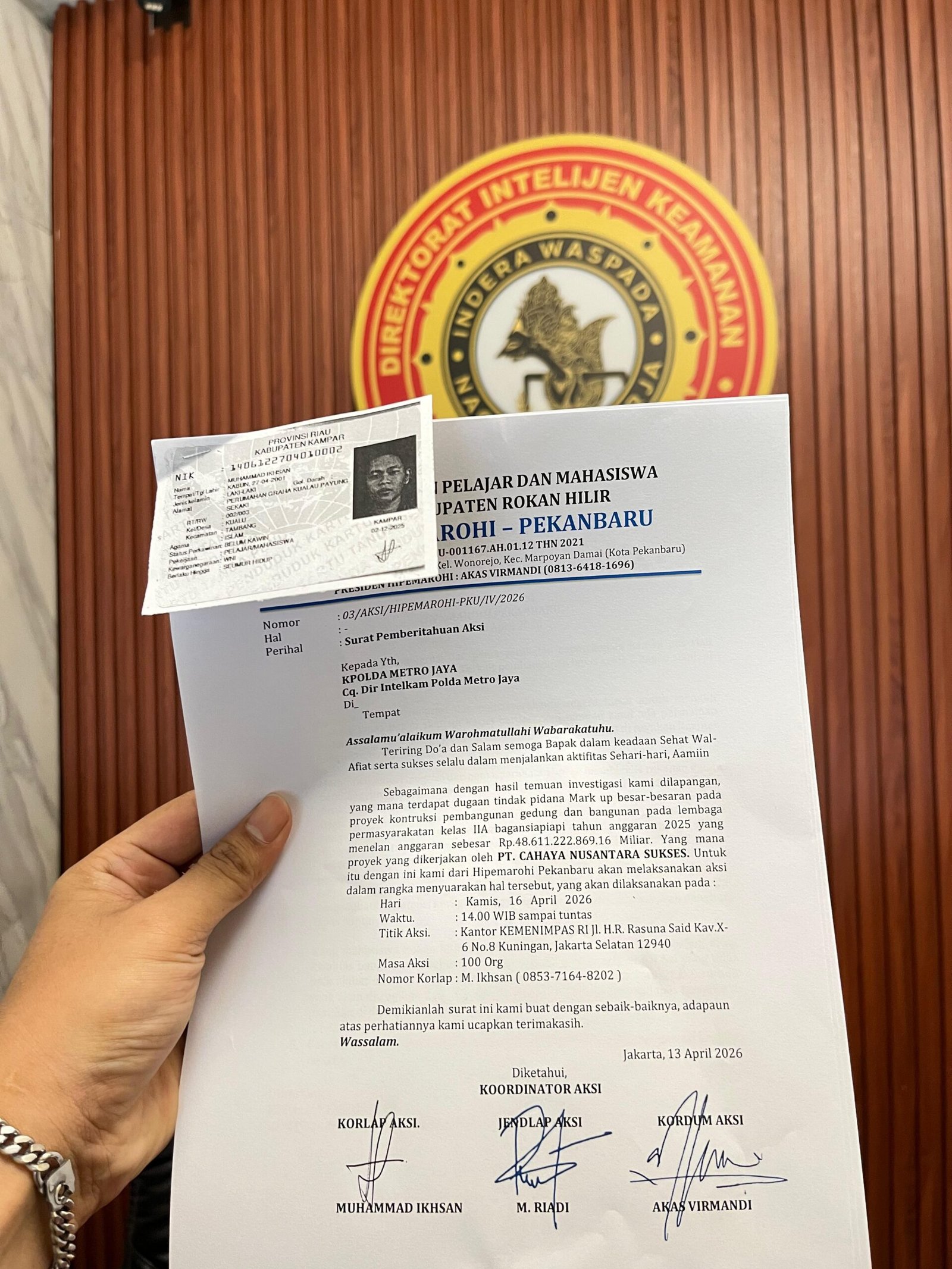 Menurut Akas, surat pemberitahuan aksi di kantor Kemeninpas telah disampaikan kepada Dit intelkam Polda Metro Jaya beberapa hari lalu dan aksi akan digelar pada Kamis 16 April 2026 mendatang. “Aksi digelar di kantor Kemeninpas sebagai bentuk sikap kritis terhadap pembangunan lapas Bagansiapiapi yang diduga asal jadi. Proses pembangunan semacam ini tentunya sangat membahayakan kualitas bangunan tersebut jika terjadi sesuatu yang tidak diinginkan akibat mutu bangunan yang kami ragukan, tentu masyarakat Rohil yang jadi korban karena warga binaan lapas tersebut didominasi warga Rohil,” ujar Akas.