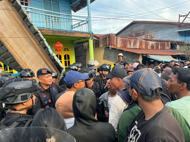 BerandaHeadlineMemanas di Panipahan! Aksi Massa Nyaris Ricuh, Brimob Polda Riau Tampil Humanis...