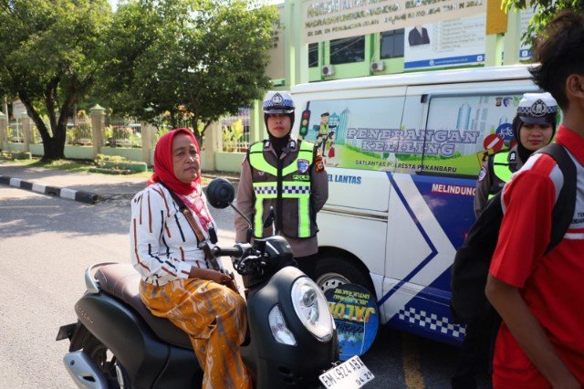 Pekanbaru (Nadariau.com) – Satuan Lalu Lintas (Satlantas) Polresta Pekanbaru kembali turun ke jalan melalui program “Polantas Menyapa” dengan menggelar kegiatan Penerangan Keliling (Penling) di Jalan Diponegoro, Selasa (28/4/2026) pagi.